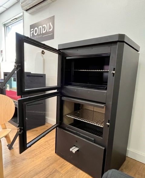 Poêle à bois avec four de grande capacité ROCAL modèle HEBAR. Modèle neuf d’exposition garantie 5 ans. Puissance nominale 12.2 KW. Rendement 81.4 %. Bûches de 50 cm. Label flamme verte 7 étoiles. Classement énergétique A+. Four de 78 litres fonctionne sans électricité équipé d’un thermomètre. Diamètre fumées 180. Sortie dessus.